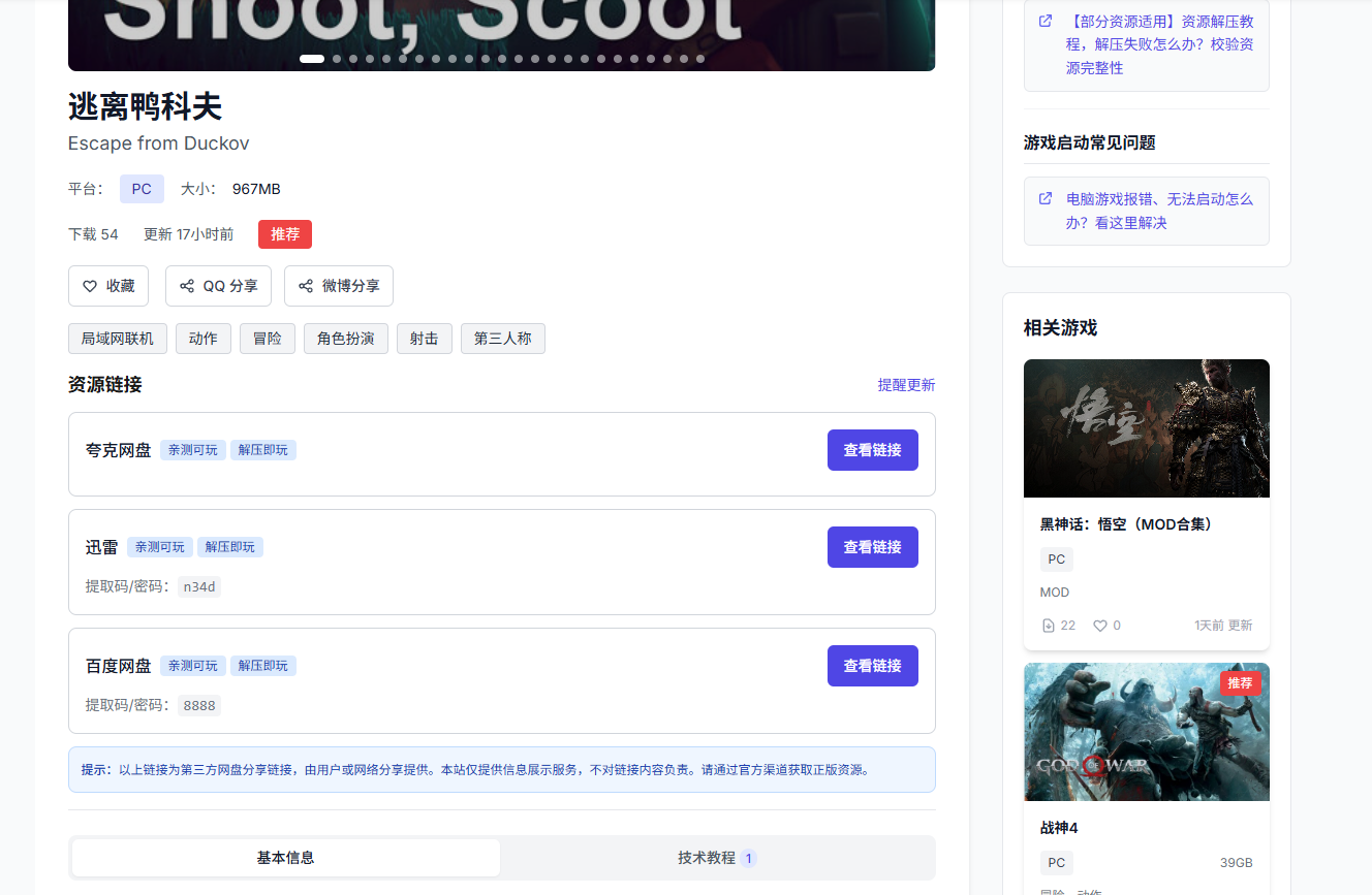 每个游戏资源提供了常见的网盘下载链接,目前暂时不提供脱离网盘的下载方式,因为要控制成本,这些额外的下载服务搭建、运营都需要额外的成本,目前还负担不起。