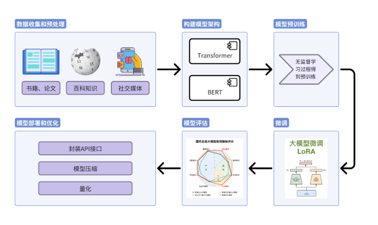 LLM大模型建立的流程主要是涉及下面这几个阶段: